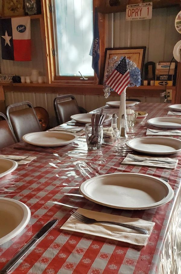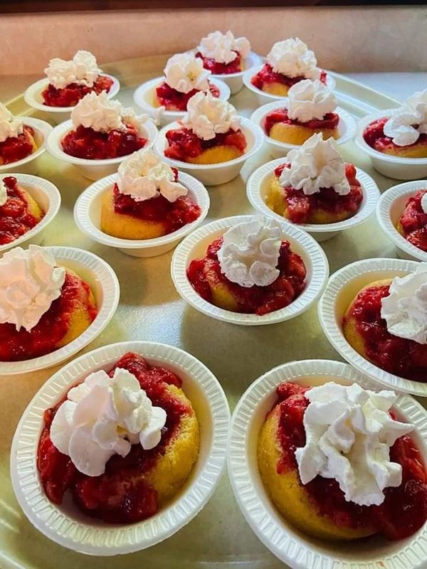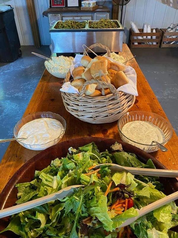 Our typical meal consists of nicely seasoned pork, self serve BBQ sauce, Opry beans, Cindy's potato salad, a fresh garden salad (Dressing on the side), delightfully baked buns plus our famous strawberry shortcake topped with whipped cream for dessert. Your choice of coffee,water, lemonade, or unsweetened ice tea to drink.